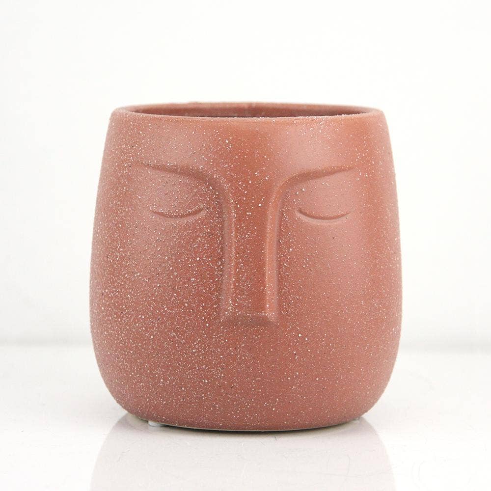 Detailed ceramic pot with sleeping faces. The sleeping faces on our ceramic pots can bring serenity and comfort to any space.